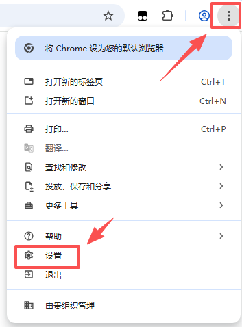 5、执行脚本后判断浏览器禁止更新是否设置成功 执行完脚本文件然后退出,通过打开谷歌浏览器点击右上角"...",找到“设置”点进去