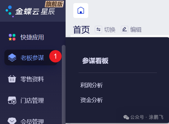 接下来,我将带领大家去查看金蝶云星辰旗舰版各个功能菜单的去全貌。 快捷应用![]() 快捷应用提供了我的收藏、增值服务、生态服务功能。其中我的收藏可以将常用的功能收藏于此,后续可以通过此链接直接快速进行对应的功能页面。 老板看板![]() 老板看板主要提供了利润分析和资金分析这两块针对小型企业非常重要的功能,小型企业一般处于发展阶段,主要为赚取利润为主,同时要保证现金流的正常。 门店管理![]() 门店管理的功能非常丰富,有零售单、预计寄存、门店补货、销售报表、店务报表、轻餐管理者几大核心功能子模块。 ①零售单:负责门店零售业务,包含零售单、结存单,管理现金缴款、收银员交接班及开票、发货等,是门店销售的核心操作入口。 ②预订寄存:管理预订与寄存业务,涵盖预订单、订金记录及核销,同时处理寄存单、流水与商品汇总,还支持门店直配,支撑门店预订类服务。 ③门店补货:统筹门店补货流程,包含要货单、配货单、发货单,支持返配申请、统一调拨及店间调拨,保障门店库存补给高效。 ④销售报表:统计门店销售数据,含零售单明细、销售汇总表、收银日报、销量统计等,还能跟踪预订单与挂单,助力销售进度监控。 ⑤店务报表:记录门店后勤数据,涵盖要货日报、明细 / 汇总表、配货汇总表及出货差异明细,辅助门店补货与库存管理的复盘。 ⑥轻餐管理:支撑轻餐类门店运营,包含扫码点单、桌位 / 区域管理,对接外卖订单,同时管理平台券授权、核销及增值服务购买,适配轻餐场景需求。 金蝶云星辰门店管理模块从零售、预订、补货,到销售统计、店务记录、轻餐运营,构建了门店全场景管理体系,保障门店日常运营高效有序。 会员管理![]() 会员管理是金蝶云星辰系统中提升客户粘性与运营效率的重要模块。 ①会员资料:管理会员核心信息,包含会员级别、信息、储值 / 积分账户,同时配置级别折扣、共享组、升降级规则,是会员管理的基础信息载体。 ②积分:运营会员积分体系,涵盖积分记录、流水,可设置基础 / 高级积分、抵现、清零规则,支持积分兑换商品 / 优惠券,实现积分的全流程管控。 ③储值:管理会员储值业务,包含充值赠送规则、储值记录 / 流水 / 核销,同时支持充次、储值支付限额、储值转换,助力储值类会员权益的精细化运营。 ④服务:支撑会员增值服务,涵盖微信公众号授权、会员卡设置,记录会员分享信息,同时配置公众号消息提醒,提升会员服务体验。 ⑤赊账:管理会员信用赊账,包含还款方案、授信 / 赊账记录、信用流水,同时跟踪第三方挂账的应收与核销,规范会员信用交易。 ⑥会员分析:提供会员数据洞察,含会员分析表、客群分析表,助力评估会员结构与行为,辅助会员运营策略优化。 金蝶云星辰会员管理模块从资料管理、积分储值,到服务、赊账、数据分析,构建了会员全维度管理体系,提升会员运营效率与粘性。 门店营销![]() 门店营销是围绕线下实体门店展开的一系列推广与销售活动,核心是吸引客流、提升到店转化率与复购率,金蝶云星辰门店营销主要包含以下: ①促销 / 优惠券:管理零售促销与优惠券,涵盖优惠券的领、核、销全流程,同时记录优惠券流水,是门店短期促销的核心工具。 ②礼品卡券:运营礼品卡券业务,包含礼品卡 / 券方案设置,以及消费、核销、转移等流水记录,助力卡券类营销的精细化管理。 ③会员营销:开展会员精准运营,提供精准营销、入会有礼、生日有礼等功能,通过个性化福利提升会员粘性。 ④短信服务:支撑营销消息触达,可配置提醒设置,记录短信发送轨迹,同时支持短信购买,助力营销信息的及时推送。 金蝶云星辰门店营销模块从促销工具、卡券运营、会员维护到消息触达,构建了门店全维度营销体系,提升门店获客与留客能力。 门店商场![]() 门店商场模块主要是针对企业有大量门店管理的业务设计开发的。聚焦门店线上商城的运营管理:涵盖商品资料与分组管理,可配置商城首页方案、配送规则及整体商城参数;支持商城订单处理,能设置时段限量销售,管理运费模板,同时可维护小程序发货信息。 订货商城![]() 订货商场是面向经销商、零售商等 B 端客户的线上订货交易平台,连接品牌方或供应商与下游渠道。主要包含以下功能清单: ①订货管理:负责订单全流程操作,包含订单确认、支付记录、订单优惠,同时管理运费模板、自提点等,处理到货签收、商品限购与支付退款,是订货业务的执行入口。 ②商城管理:配置商城基础功能,涵盖搭建指南、系统配置、页面方案、小程序 / 公众号设置,还能管理支付与消息提醒,是商城运行的基础支撑。 ③商品管理:管理商城商品信息,包含商品列表、分类、品牌,同时配置客户价格策略,支撑商品的线上展示与定价。 ④客户管理:维护商城客群,涵盖客户列表、等级管理、潜在客户及用户管理,同时设置登录限制,实现客群的分层运营。 ⑤营销:开展商城推广活动,包含批发促销、优惠券、在线推广、小程序直播等,助力提升商城订单转化。 ⑥积分:管理客户积分体系,涵盖积分账户、设置、规则、抵扣及记录,通过积分激励增强客户粘性。 金蝶云星辰订货商场模块从订货执行、商城配置到商品、客户、营销、积分管理,构建了线上订货商城的全流程运营体系。 客户经营![]() 客户经营模块,其实类似与一个简易版的CR