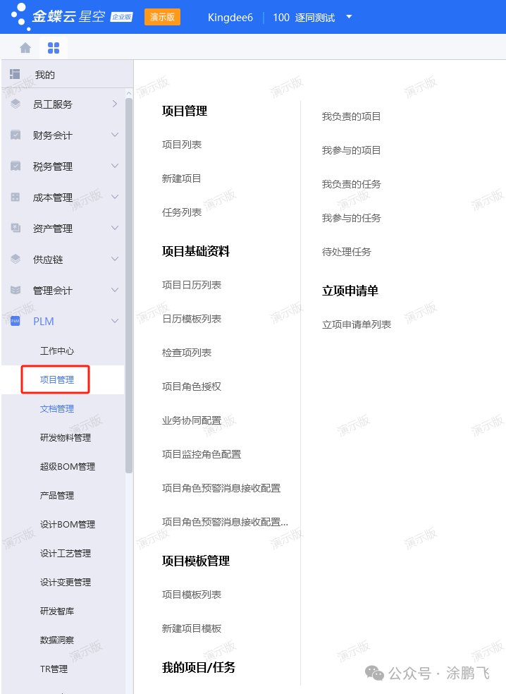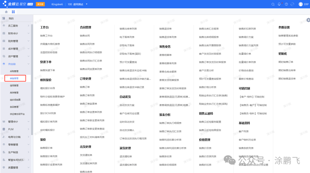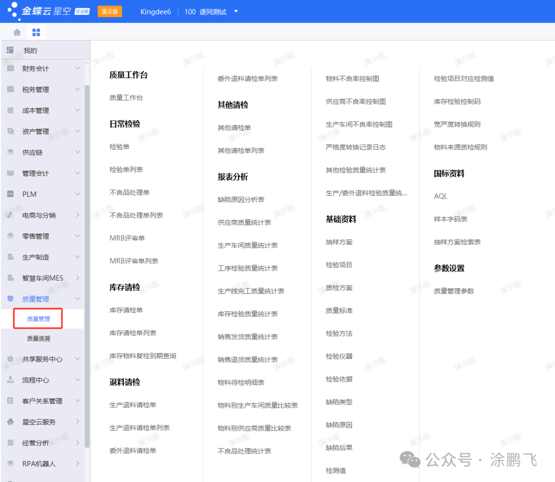 我们先看下金蝶云星空的主页和菜单界面
