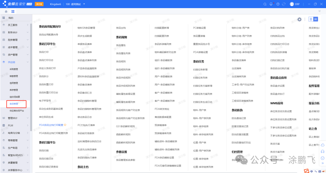 库存管理库存管理是企业供应链管理中的重要环节,主要用于对库存商品的入库、出库、盘点、调拨等操作进行全流程管控。它通过实时监控库存水平,优化库存结构,降低库存成本,确保企业生产与销售的顺利进行。金蝶云星空的库存管理模块支持与采购、销售、存货核算等功能无缝集成,实现数据共享与业务协同,帮助企业提升库存管理效率,减少呆滞库存,提高资金周转率。同时,该模块还提供库存预警、库存分析等功能,助力企业实现精细化管理。 ![]() 组织间结算组织间结算指企业在多组织架构下,对内部各组织之间的交易进行财务核算与资金清算的过程。它涵盖交易对账、结算规则配置、结算单生成及审核等环节,确保企业内部财务数据一致性和资金流动透明性,支持集团企业高效运营与管理决策。 ![]() 条码管理条码管理是供应链模块中的重要功能之一,主要用于通过条码技术对物品进行唯一标识和高效管理。它支持条码的生成、打印、扫描等操作,实现对库存商品、采购物资、销售产品的精准追踪。条码管理能够大幅提升出入库效率,减少人工操作误差,优化库存管理流程。同时,它与库存管理、采购管理和销售管理等功能无缝集成,为企业提供实时、准确的数据支持,助力实现供应链的智能化与精细化管理。 ![]() 管理会计