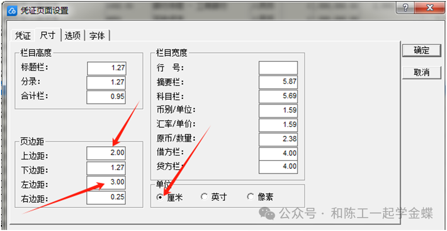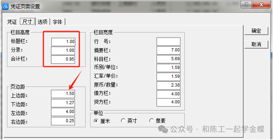 退出预览,还是刚才凭证两个字下面的页面设置 中下角一定记住要选择厘米,然后把上边距和左边距调大一些 确定后再预览就差不多了 那有些客户朋友们就会问,你这才5行,我们凭证经常有多行,想打印8行可以吗?当然可以的,凭证纸14厘米高,打5行确实有点浪费了 还是在刚才的页面设置 在上面的选项里面,把每张凭证打印分录数修改为8