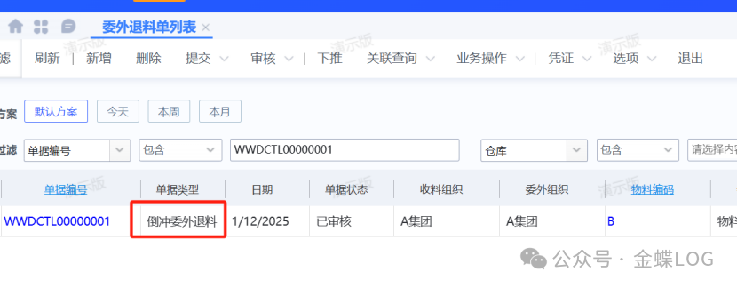 前面有说道,【倒冲委外领料单】是在【入库单(采购入库)】之后自动生成的倒冲领料单,所以【委外倒冲退料单】也需要找到这个【采购入库单】,下推一张【采购退料单】 ![]() 审核这张【采购退料单】时,系统便会产生一张【委外倒冲退料单】。同理反审核【采购退料单】对应的倒冲退料单便会消失。 ![]() 阅读原文:原文链接 点晴模切ERP更多信息:http://moqie.clicksun.cn,联系电话:4001861886 该文章在 2026/1/19 10:32:34 编辑过 |