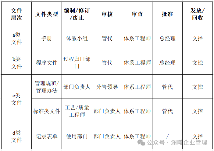 在受控文件管理中,什么样的受控文件由什么样的部门来管理也是有对应要求的,具体可以通过以下的对应管理来进行: