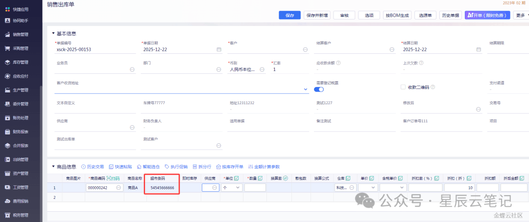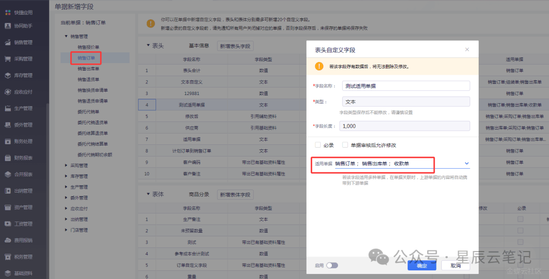 [点晴模切ERP]金蝶云·星辰单据新增字段常见问题
