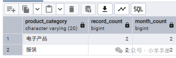-- 查看数据的唯一值分布SELECT  product_category, COUNT(*as record_count, COUNT(DISTINCT sales_month) as month_countFROM sales_dataGROUP BY product_category;