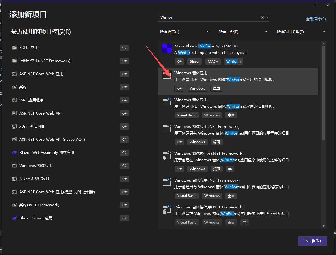 首先我们快速创建一个名为NanUIExercise Windows 窗体应用程序: