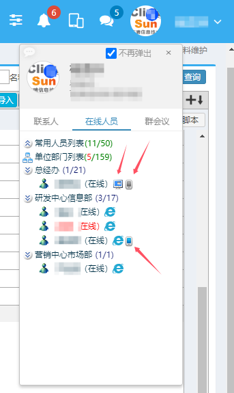 如果上面的后台服务器程序看不到在线用户,说明PC客户端不是通过TCP/IP直接连接OA服务器,是通过http协议连接的,在WEB页面的在线用户列表中,可以看到PC客户端和手机APP的在线状态。