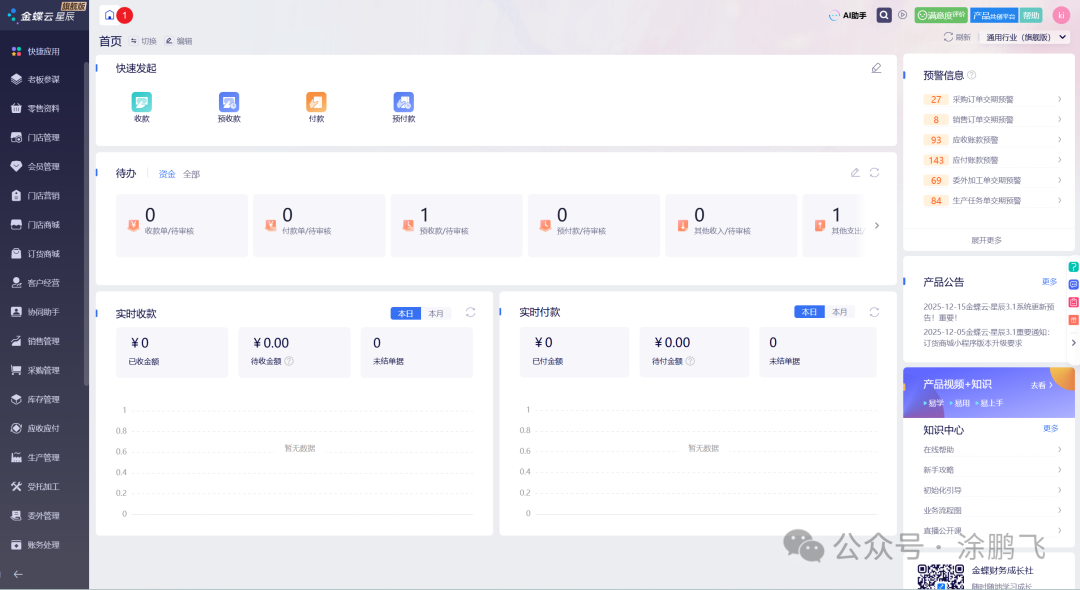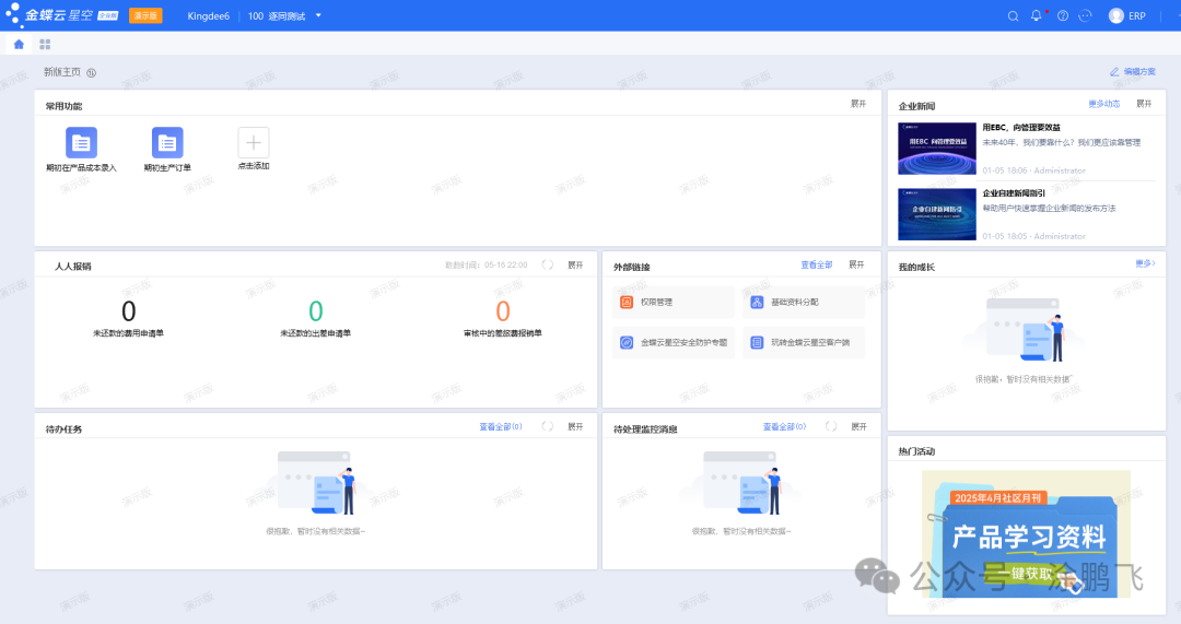 我们先看下金蝶云星空的主页和菜单界面先看下金蝶云星空的首页长什么样!再看下金蝶云星空的到底有哪些功能菜单金蝶云星空的功能菜单非常全面,几乎提供了企业管理的所有功能模块供使用,下图中右边为总账模块的界面。接下来我们将从系统的每个菜单进行一个简要的功能解释和系统截图的框架对金蝶云星空的整体功能进行一个介绍!员工服务人人报销...