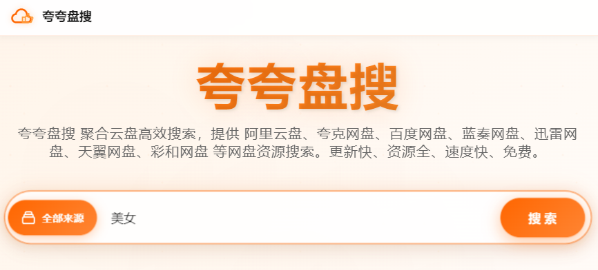 夸夸盘搜-聚合云盘资源高效搜索工具,无需注册,搜索结果直接可用网址:https://www.kuakuaso.com/▎网站介绍:一个免费无需登录网盘资源聚合搜索引擎,支持同时检索阿里云盘、夸克网盘、百度网盘、蓝奏云盘、迅雷云盘、天翼网盘和彩和网盘等多种主流云盘的资源。用户输入关键词后可以快速查找对应的文件链接,平台...