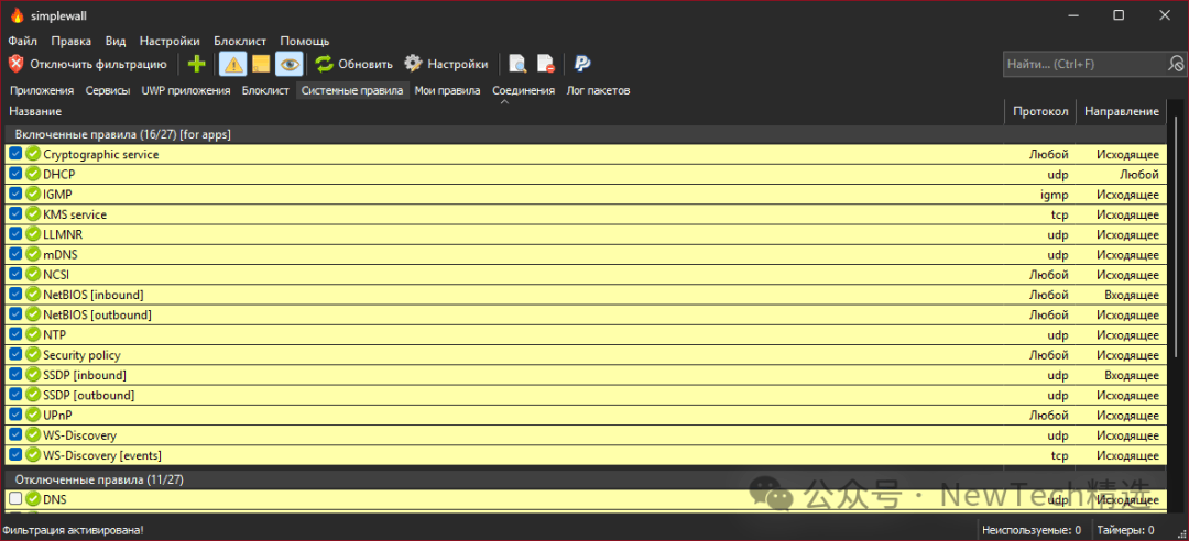 Simplewall中文版是一款开源免费、功能实用的进程联网控制监控工具,具有美观的界面和简单方便的操作方式,用户可以轻松地了解当前哪些程序或进程正在进行网络访问操作,并对其进行控制,即使将程序关闭,只要开启了过滤功能并设置了相应的规则,Simplewall就可以继续过滤网络访问操作,从而能够帮助用户有效地防止病毒和流...