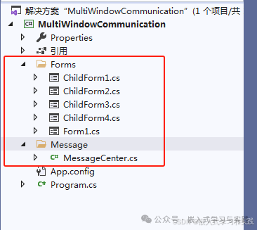 | 一、多窗口通信方式C#WinForms多窗口通信的方式有:构造函数传递属性传递接口事件通信委托回调静态消息中心二、示例代码C#WinForms中多窗口之间各种通信方式的示例。示例包含一个主窗口和多个子窗口,测试开发中常用的几种通信方式。项目结构如下:2.1MessageCenter.cs代码usingSystem;us...   |