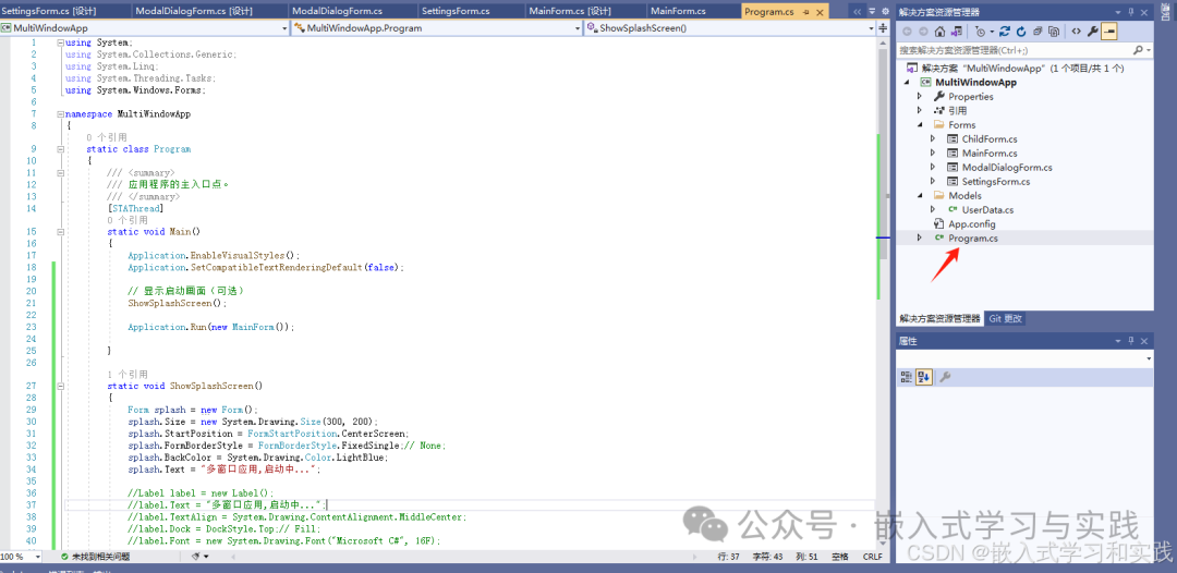 | 测试用例WinForms多窗口应用示例,包含主窗口、子窗口、模态窗口和非模态窗口的创建和管理。1.项目结构和基础类项目文件结构MultiWindowApp/├──Forms/│├──MainForm.cs│├──ChildForm.cs│├──ModalDialogForm.cs│└──SettingsForm.cs├...   |