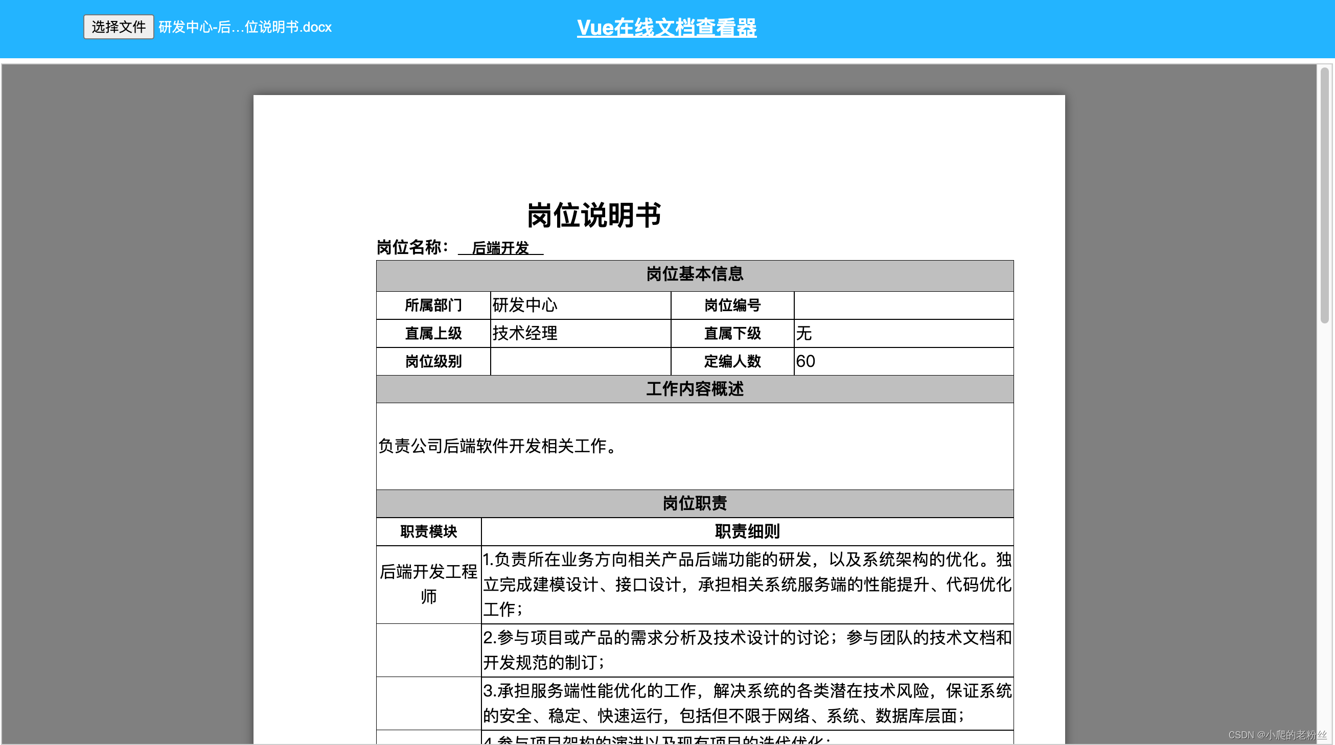 纯前端的文档预览功能,是非常常见的需求,但就是这么简单的需求,难住了许多可爱的小伙伴们。别急,先访问一下解决方案,给你一个惊喜,再往下看: