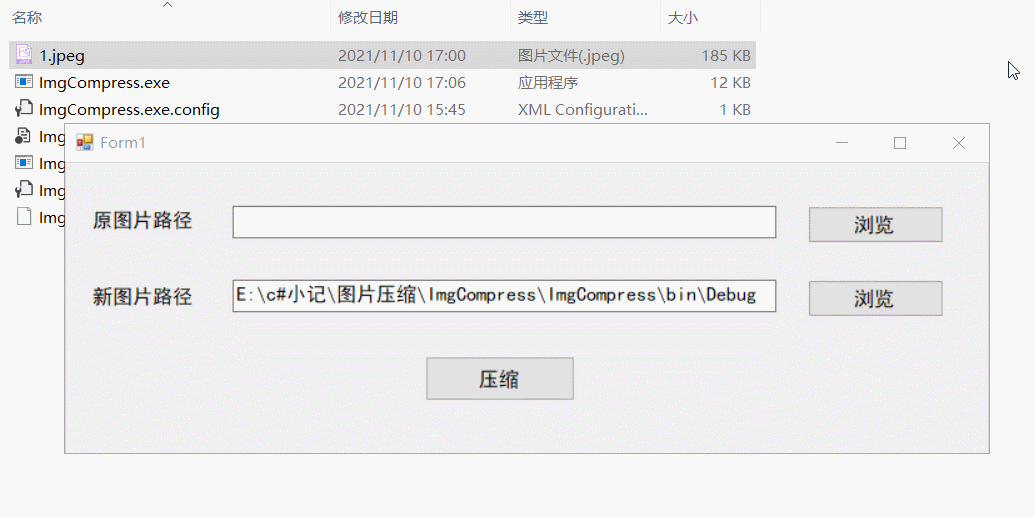 private void btnCompress_Click(object sender, EventArgs e) { ImgCompress(10L); ImgCompress(50L); ImgCompress(70L); MessageBox.Show("成功"); }