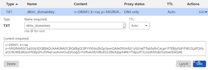 DKIM 可说是避免被判定为垃圾邮件的一大利器,DKIM 属于一种类似加密签名的解析记录,只有包含此加密数据,且公钥与密钥相匹配才属于合法邮件,要设置 DKIM 记录,首先要查询 DKIM 信息。了解更多DKIM相关知识可以参考:https://github.com/internetstandards/toolbox-wiki/blob/main/DKIM-how-to.md