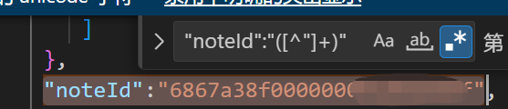 一个大的 json 文件,找到所有 noteId 对应的值的所有行"noteId":"68385178000000002102d**"