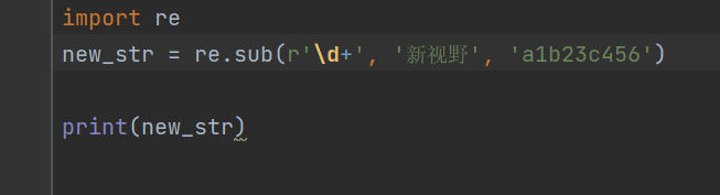 new_str = re.sub(r'\d+', '新视野', 'a1b23c456')print(new_str)