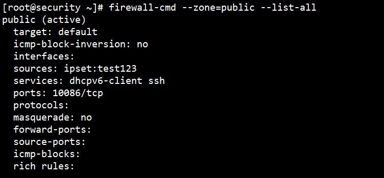 firewall-cmd --permanent --zone=public --add-source=ipset:test123