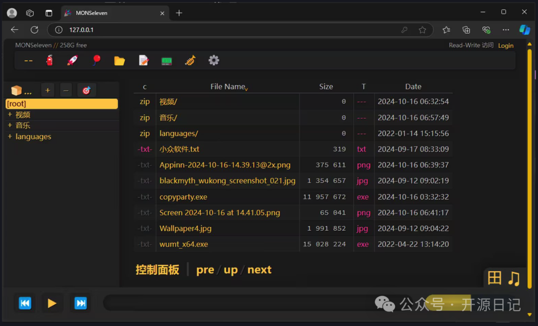 - 多媒体处理: 除了基本的上传下载外,还能生成图片、音频、视频的缩略图,提供更丰富的文件浏览体验。