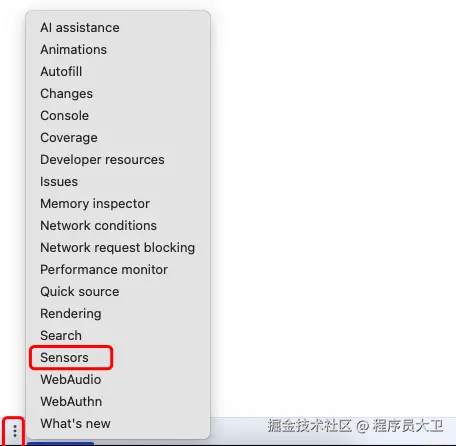 点击左下角三点图标,选择 Sensors: