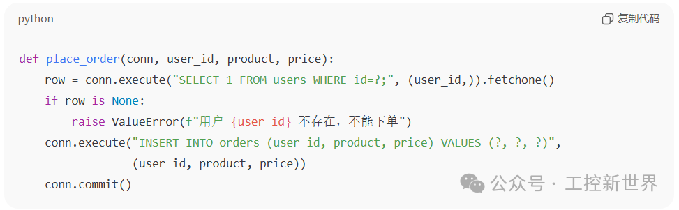 在 Python 里,下单前先检查用户是否存在: