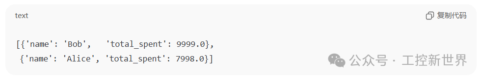 • 按总消费额从高到低排序,谁花得多排在前面。