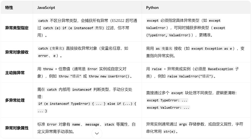 代码;     //如:console.log(`异常类型:${e.name},异常原因:${e.message}`);